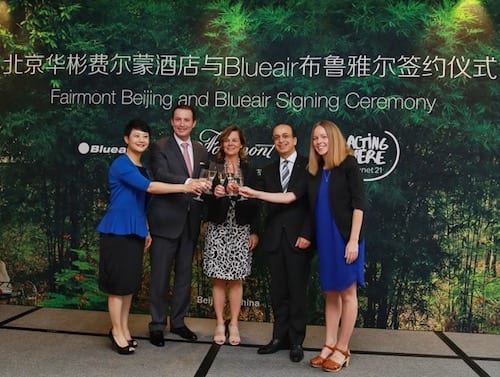 北京华彬费尔蒙酒店与Blueair布鲁雅尔20日于北京签订合作协议,创造更健康的酒店环境,提升宾客体验。作为雅高集团「21世纪地球」可持续发展项目的一部分,此次合作将为客人提供良好环境和舒适的酒店体验。