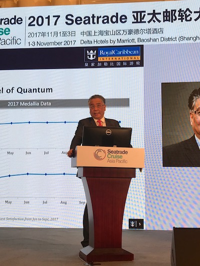 在Seatrade亚太邮轮大会上,皇家加勒比国际游轮中国和北亚区总裁、皇家加勒比全球高级副总裁刘淄楠博士发表分享了皇家加勒比游轮如何推动邮轮行业可持续发展。