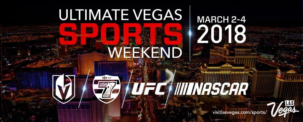 2018年3月2日到3月4日这个周末,拉斯维加斯将齐聚NASCAR美国纳斯卡赛车竞赛、美国七人制橄榄球锦标赛(USA Sevens Rugby)、NHL美国职业冰球联盟球队维加斯黄金骑士队(Vegas Golden Knights)、UFC® 终极格斗冠军赛,带来赛车、橄榄球、冰球、格斗这四大领域的顶级体育赛事,为广大体育迷们带来每日丰富的体育赛事选择以及每晚精彩的拉斯维加斯特色体验。关于终极体育周末和所有活动门票的信息,请访问 www.visitlasvegas.com/sports。
