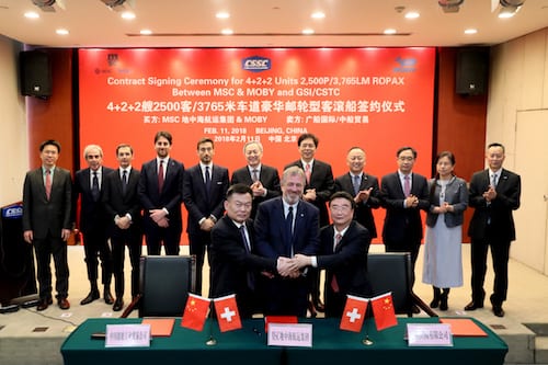 2018年2月11日,总部位于瑞士日内瓦的全球第二大运输与物流集团MSC地中海航运集团和总部位于意大利、由Onorato Armatori拥有的客轮运营商MOBY公司与广船国际有限公司/中船贸易公司(联合卖方)签订了4+2+2艘2500客/3765米车道豪华邮轮型客滚船建造合同。广船国际有限公司和中船贸易公司是中国船舶工业集团有限公司旗下的子公司。