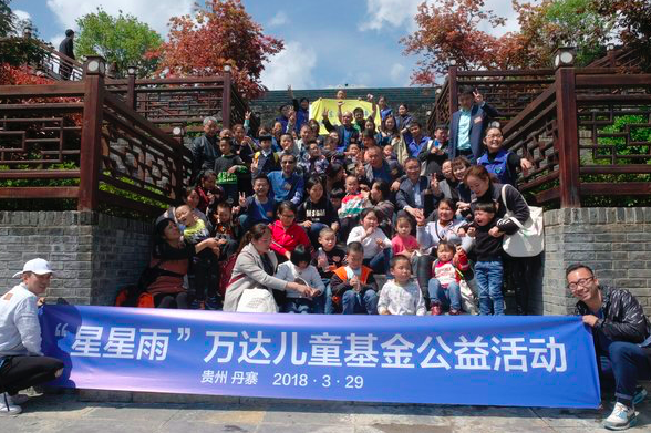 2018年3月29日,万达酒店及度假村携手星星雨教育研究所发起“我们在一起”万达儿童基金主题公益活动。活动在丹寨万达锦华温泉酒店举办,邀请了黔东南地区20位孤独症小朋友及他们的家长一同参加,黔东南州残联理事长朱建华、万达酒店及度假村总裁宁奇峰先生出席活动。