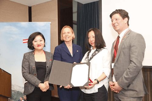 据悉,此次由奥地利国家旅游局CEO Dr. Petra Stolba女士等高层颁发的证书是其在各境外市场对当地旅行社颁发的最高级别荣誉证书,这也是在中国市场上首次为旅行社颁发荣誉证书。