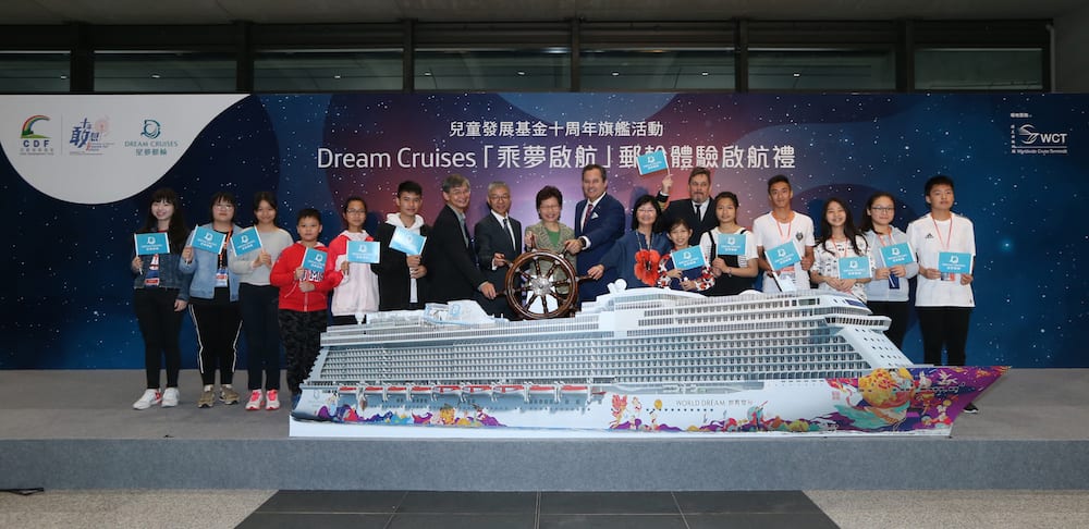 为支持劳工及福利局旗下的儿童发展基金成立十周年,星梦邮轮推出旗舰社会企业责任项目 「Dream Cruises乘梦启航」,邀请83位儿童发展基金受惠学员,与家人一起于4月15日登上星梦邮轮最新成员「世界梦号」,享受邮轮旅游乐趣。香港特别行政区行政长官林郑月娥女士亦亲临启航礼欢送学员乘梦启航。