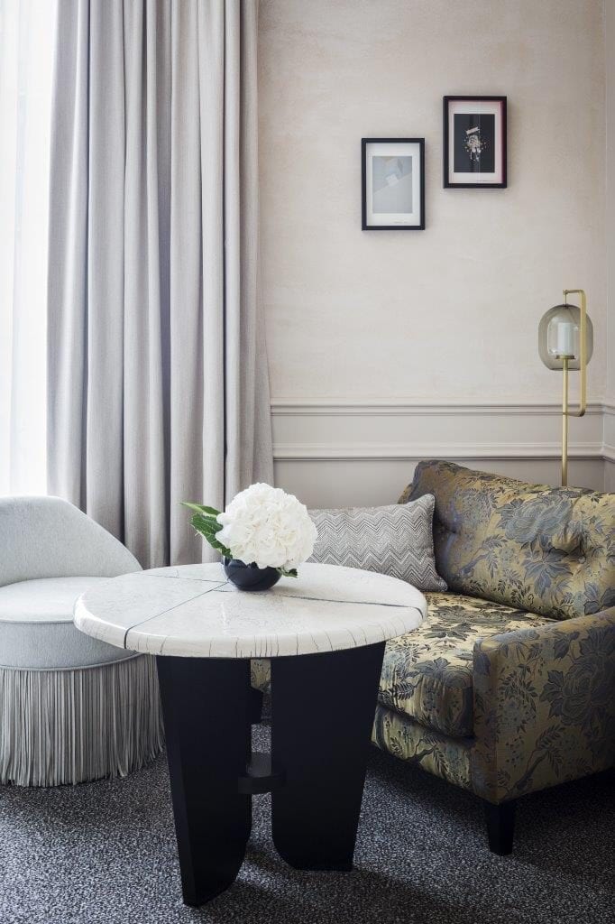斯克瑞博酒店希望重现法兰西第二帝国时期巴黎歌剧院周边繁华热闹的夜生活氛围,那时斯克瑞博酒店还是赛马俱乐部专门的活动场所。Tristan Auer巧妙地以一种细腻考究的方式重现了“男士俱乐部”的精神。为了冲淡过于浓厚的男性色彩,他设计的客房和茶室更富女性魅力,更加空灵纯真、柔和贴心,同时还让人联想到巴黎经典的传统奥斯曼风格(Haussmannian)公寓。
