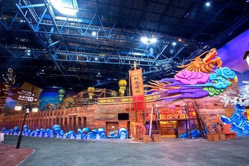 南京万达乐园占地面积达4万平方米,总投资6亿元人民币,拥有10余项世界级大型游乐设备,其中多台设备属于全球首创。其所坚持与倡导的“中国文化,世界表达”的理念,在吉祥飞塔、造船工坊、金陵彩灯等游乐项目上得到了全然体现,真正实现了本土文化的世界性表达:“吉祥飞塔”的设计灵感源自金陵的一个与火药相关的故事——“万户飞天”,运行时以压缩空气为动力,带动座舱快速弹射上升、极速坠落下降,再配上古塔典雅的环艺造景氛围,为游客带来了中西合璧的双重游乐体验。而“造船工坊”是以600年前郑和下西洋时的大本营和宝船建造地为参照进行设计,是亚洲首台室内弹射式过山车,立体饱满的互动娱乐体验令人倍感新奇。