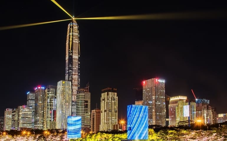 为营造具有现代都市繁华和魅力的灯光环境,给市民、游客带来幸福感和获得感。深圳市组织实施了景观照明提升行动,打造“国内领先、国际一流”的城市夜景,在美轮美奂的高楼大厦基础之上,营造都市繁华、会讲述城市故事的夜景设计。夜间灯光表演由35栋楼宇、5个广场的绿化灯联动展示,形成一幅幅动态画卷,分山海之城、改革之窗、创新之都、和谐之境4个篇章,透过景观照明演绎深圳发展的辉煌历程,让更多人发现创业之都的魅力。