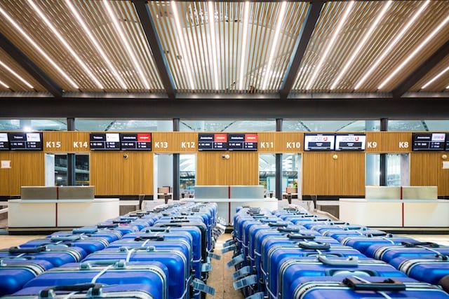 该机场航站楼共设置了13个行李托运柜台和468个行李点,旅客均可在这些地方交付和托运行李。该机场航站楼面积达140万平方米,是全球最大的拥有综合设施的单体航站楼。该航站楼的另一个优点在于其超大容量的行李寄存系统。该系统的行李存储容量高达10800件,也就是说,提前到达机场的旅客可以随时交运行李。