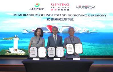 云顶邮轮集团于本月10日与冲绳县农业协同组合 (JA Okinawa)及Leospo Incorporated (Leospo Inc.)签订独家合作意向书,三方正式展开合作,为云顶邮轮旗下开展冲绳航线的邮轮提供产地直送的地道冲绳美味,包括享誉全球的冲绳和牛、鲜嫩多汁的冲绳Agu猪肉等。