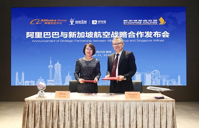 (刘霈芯/ 杭州采访报道)新加坡航空公司与阿里巴巴宣布达成全面战略合作,双方共同签署合作备忘录以及会员协议,旨在通过阿里经济体生态力量,共同为零售和旅游价值链上的消费者开启新价值。阿里巴巴旗下包括飞猪、菜鸟、阿里云及蚂蚁金服旗下支付宝共四个业务线都将加入到本次合作中,合作内容涵盖机票销售、会员互通、创新营销、国际货运、云计算服务、机上支付等方面。