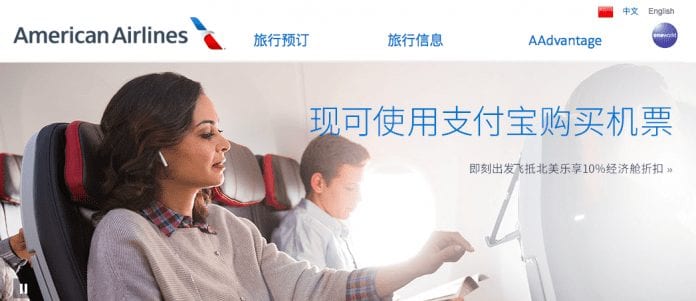 全球最大航空公司美国航空的中文网站已与全球最大移动和在线支付平台支付宝实现对接。支付宝是中国50%以上消费者的首选支付方式,通过携手战略合作伙伴,支付宝在全球拥有超过8.7亿用户。如今支付宝用户可以采用这种付款方式预订美国航空由北京(PEK)和上海(PVG)飞往其美国枢纽洛杉矶(LAX)和达拉斯/沃斯堡(DFW)的每日航班,再转乘至五大洲近300个目的地。