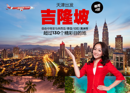 随着天津至吉隆坡的直飞航线正式开通,亚航在中国目前共有20个目的地,每周550个直飞航班定点连接亚航在马来西亚、泰国和菲律宾的枢纽,中国乘客可以利用亚航全球网络无缝连接到超过130个精彩目的地,包括亚太及美洲国家。