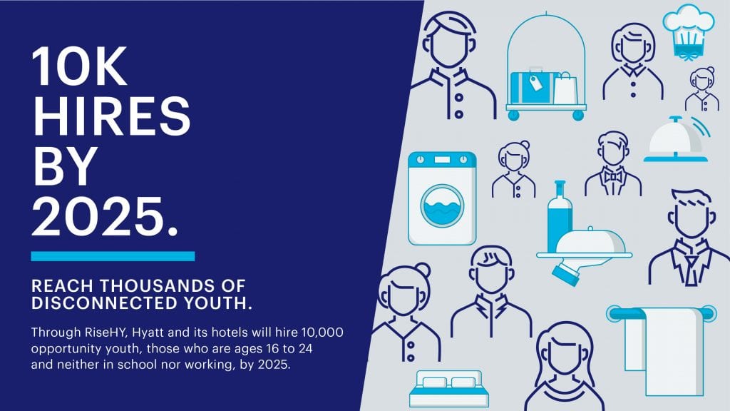 凯悦酒店集团(纽约证券交易所代码:H)宣布推出崭新的全球计划RiseHY,旨在为渴望职业发展的青少年提供合适的酒店业就业机会。作为该项计划的其中一部分,世界各地的凯悦酒店承诺于2025年前聘用一万名“机会青年”——即年龄介于16至24岁之间、既没有求学也没有就业的青少年。