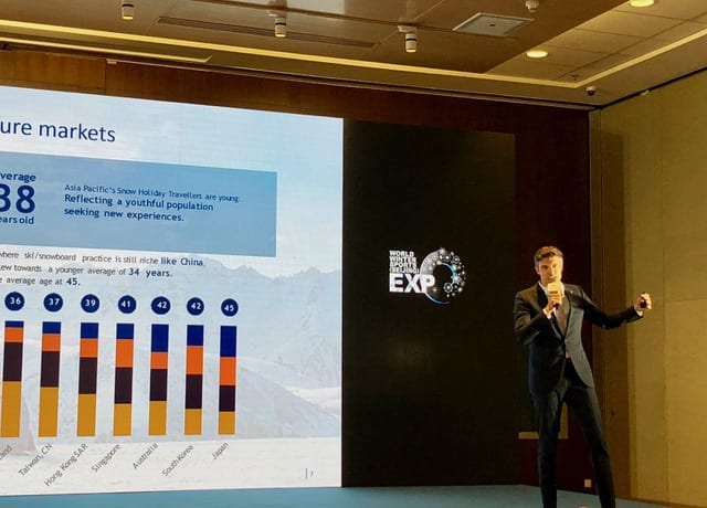 Club Med亚太区山林项目战略负责人Sebastien Portes介绍道,随着区域内经济成长、人民变得富裕,亚太地区的冰雪度假市场潜力也上升得非常迅猛。相关调查显示,过去三年间,有2.38亿人度过冰雪假期,且仅在过去一年间,度过冰雪假期的人口就达到1.38亿人。而尽管亚太地区女性人口比较大(51%),但冰雪假期却是由男性所主导(56%),仅香港、马来西亚、新加坡和澳大利亚为例外;另外,亚太地区的冰雪度假人口平均年龄为38岁,反映出年轻人对新体验的追求,特别是在未成熟市场。比如千禧人口庞大,但单板和双板滑雪仍是新兴运动的中国大陆、马来西亚、印度尼西亚和印度,其平均年龄倾向34岁;相较之下,日本的冰雪度假平均年龄就在45岁。
