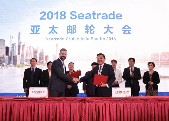 今日,全球最大的休闲旅游公司嘉年华集团(NYSE:CCL:LSE:CUK)旗下的传统意大利风情邮轮品牌——歌诗达邮轮,在2018 Seatrade亚太邮轮大会上,与上海工程技术大学(SUES)签署战略合作备忘录,标志着歌诗达邮轮与中国高校的战略性合作,旨在为邮轮行业培养高水平专业人才。宝山区党委书记汪泓女士, 以及Seatrade亚太邮轮大会的主办方之一博闻(UBM)总裁Andre Williams出席并见证了此次签约仪式。歌诗达邮轮集团亚洲总裁马睿哲、上海工程技术大学副书记史健勇分别代表双方签约。