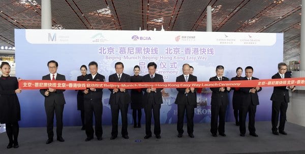 2018年11月2日,中国国际航空股份有限公司(以下简称“国航”)、北京首都国际机场公司(以下简称“首都机场”)与慕尼黑机场三方共同推出了北京-慕尼黑国际快线产品。同时,国航及国泰航空、国泰港龙航空与首都机场及香港机场共同推出的北京-香港快线产品也同期上线。这是继2017年5月23日国航联合首都机场推出北京-法兰克福快线产品后,国航与首都机场深度合作,共同建设大型国际航空枢纽的重要举措。