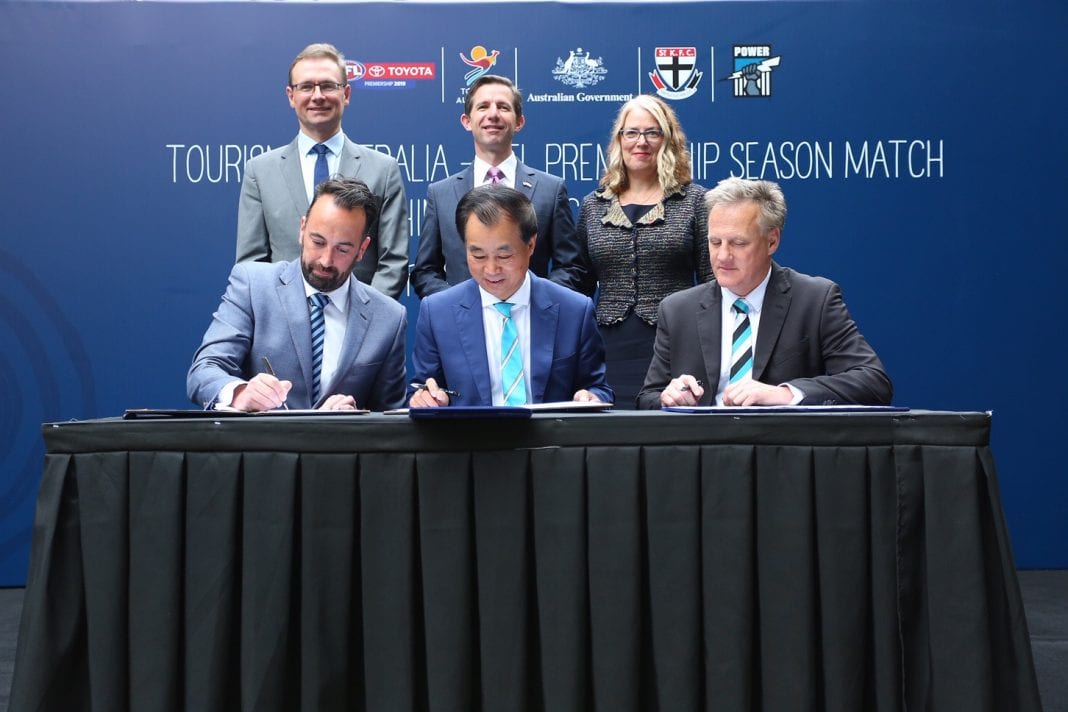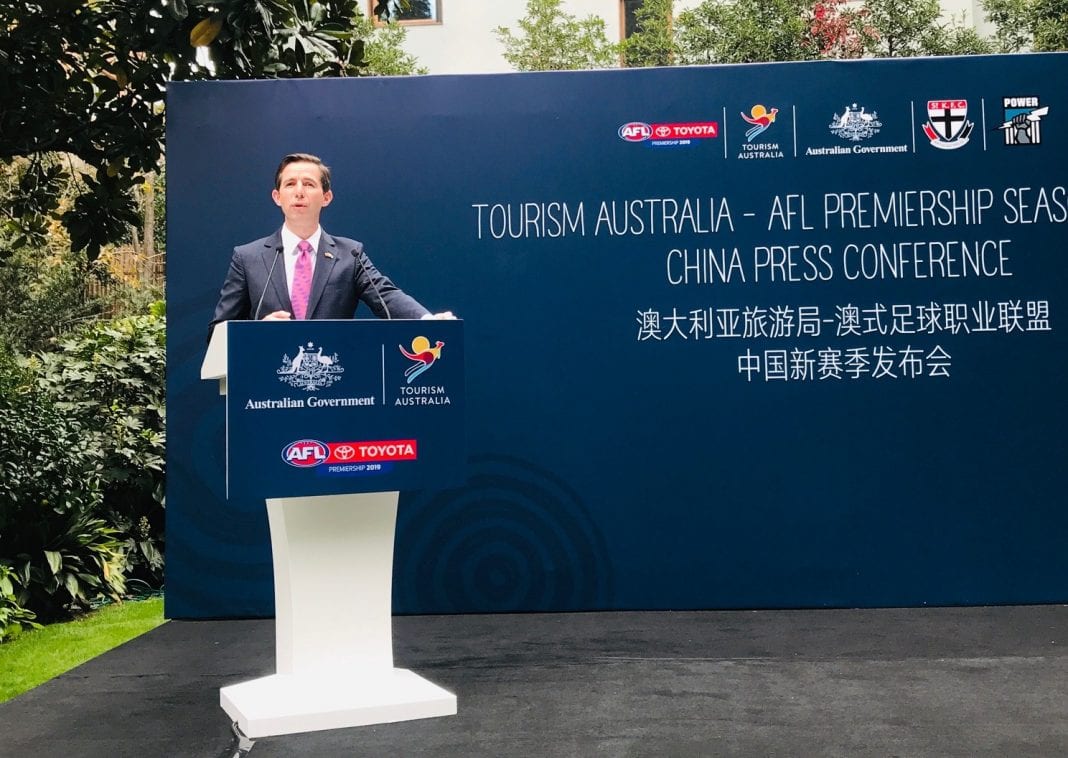 澳大利亚贸易、旅游和投资部长西蒙·伯明翰(Simon Birmingham)议员阁下表示,“中国与澳大利亚两国之间的交往不仅仅限于游客往来,同时在担任澳大利亚教育部长一职位上也见证了中澳之间深远的交流,此外,目前澳大利亚华裔也有约120万人,也对澳大利亚社会文化有深远影响。2015年开始,澳大利亚政府启动了一项国际性的‘体育外交’战略,旨在通过体育活动促进与世界各国的关系,其中在中国举办的澳式足球职业联盟常规积分赛便是该战略的体现,在过去两年里,上海的体育和旅游爱好者们见证了阿德莱德港澳式足球俱乐部和黄金海岸太阳俱乐部之间的精彩对决。2019年,观众更将有机会看到圣基尔达澳式足球俱乐部对阵阿德莱德港澳式足球俱乐部。”