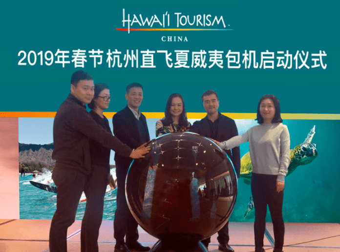 近年来,我国春节出境游市场持续火热,根据国家旅游局数据中心发布的《2018年春节中国出境旅游大数据报告》显示,春节期间,我国游客从国内近200个城市到达全球68个国家和地区,海内外730多个城市。其中以杭州、苏州、无锡和宁波等为代表的新一线城市春节出境游的热情亦持续高涨。越来越多的游客开始选择出国“过大年”。2018年春节,杭州直飞夏威夷首次包机两班次全部售罄,让市场看到长三角地区的游客对夏威夷的喜爱。11月20日,夏威夷旅游局和上海众信旅游在杭州举行了“2019年杭州直飞夏威夷春节包机”启动仪式。