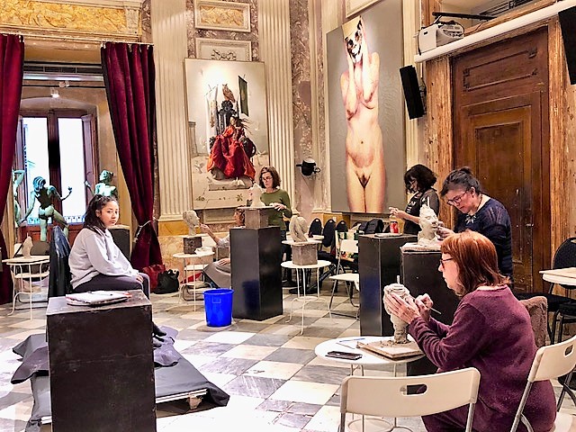 然而进了博物馆所在的那条巷子里,我才发现我有多天真——从西班牙中学生、外国家庭到中国观光客,那叫一个人山人海。好吧,既然最初就不是必踩点,还是别把剩下的宝贵几小时浪费在和其他人大眼瞪小眼地排队好了。前行几米,豁然发现身旁楼里的庭院有个雕塑,有售票亭,还有明信片架。想必也是家博物馆或美术馆?