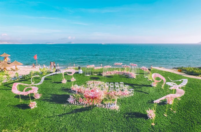 金茂三亚亚龙湾丽思卡尔顿酒店于近日正式宣布开放其全新的户外海边草坪婚礼场地。本次活动由上海诺丁山倾力打造,邀请了酒店嘉宾, 每一位嘉宾在现场都可以感受到海景草坪的美妙之处。同时活动现场也特别设计了鸡尾酒时刻,酒店饼房团队更是倾力打造精巧的南瓜车甜品台,大家尽可以在海风的吹拂下,呼吸来自大海和草木的花香,感受现场浪漫的气氛。
