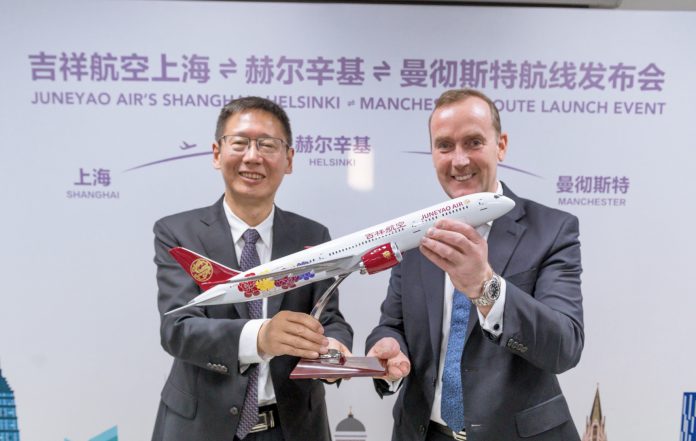 (刘霈芯/ 采访报道・摄影)吉祥航空宣布将开通又一欧洲新航点,计划于2020年4月夏秋航季起,在目前上海-赫尔辛基航线基础上,以第五航权的形式,将航班进一步延伸至英国曼彻斯特,这也是吉祥航空首条第五航权航线。新航线计划在每周一、三、五执行,用其波音787-9“梦想”宽体客机执飞。