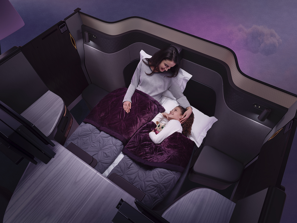 作为业界首个4座合并及双人床配置的商务舱座椅,Qsuite配有可调节的隐藏面板,乘客可随时升起与毗邻座位隔绝的面板,以打造私人专属空间。可调节面板与可移动显示屏还能为中间4座的旅客打造私人套间,让同行的同事、朋友或家人一同工作、就餐和娱乐。这些全新的性能将为旅客打造专属的空中环境,为商旅出行提供终极定制体验。这款创新性的商务舱座椅,将为航空商旅出行树立新基准。