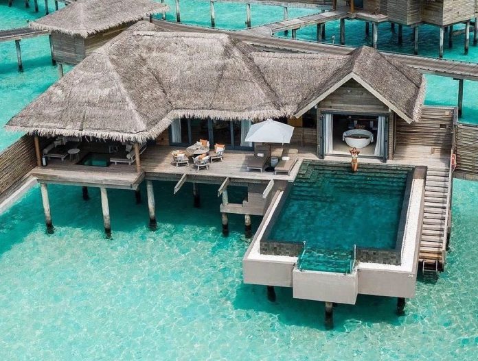 据其介绍,度假村建有125间海滩、水上别墅和套房,提供令人难以置信的空间感和惊叹的海景。度假村在设计上采用了茅草屋的特点,把屋顶修建成了几何的茅草屋顶。每个小屋都有直接下水的楼梯,可以随时下海游泳,而不用出屋。酒店的别墅风格适合于家庭亲子及夫妻蜜月游,性价比非常高。