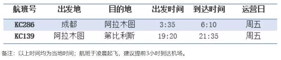 阿斯塔纳航空即日起开通成都-阿拉木图-第比利斯航线,旅行日期从2021年5月14日起开始,目前系统开放销售至2021年8月27日。