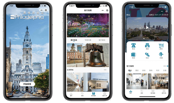 费城会议旅游促进局总裁兼首席执行官格雷格·卡伦先生 (Gregg Caren)表示:“费城做为深受中国游客喜爱的目的地,此次与当地酒店、购物中心、景点、餐饮伙伴以及多项全新城市体验,携手费城国际机场和美国铁路公司共同期待在疫情之后再次诚挚的欢迎中国游客的到来。此次费城小程序的推出不仅为中国游客提供了更加便利的服务平台同时也代表着费城对中国旅游市场的坚守之心并将继续欢迎国际游客的到访”。