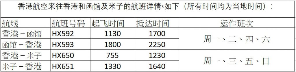 香港航空宣布即将开通直航往函馆和米子的服务。两个冬季航班将于2023年12月18日至2024年2月26日期间运行,分别每周各营运四班。香港航空亦是唯一营运此两条日本航线的香港航空公司。