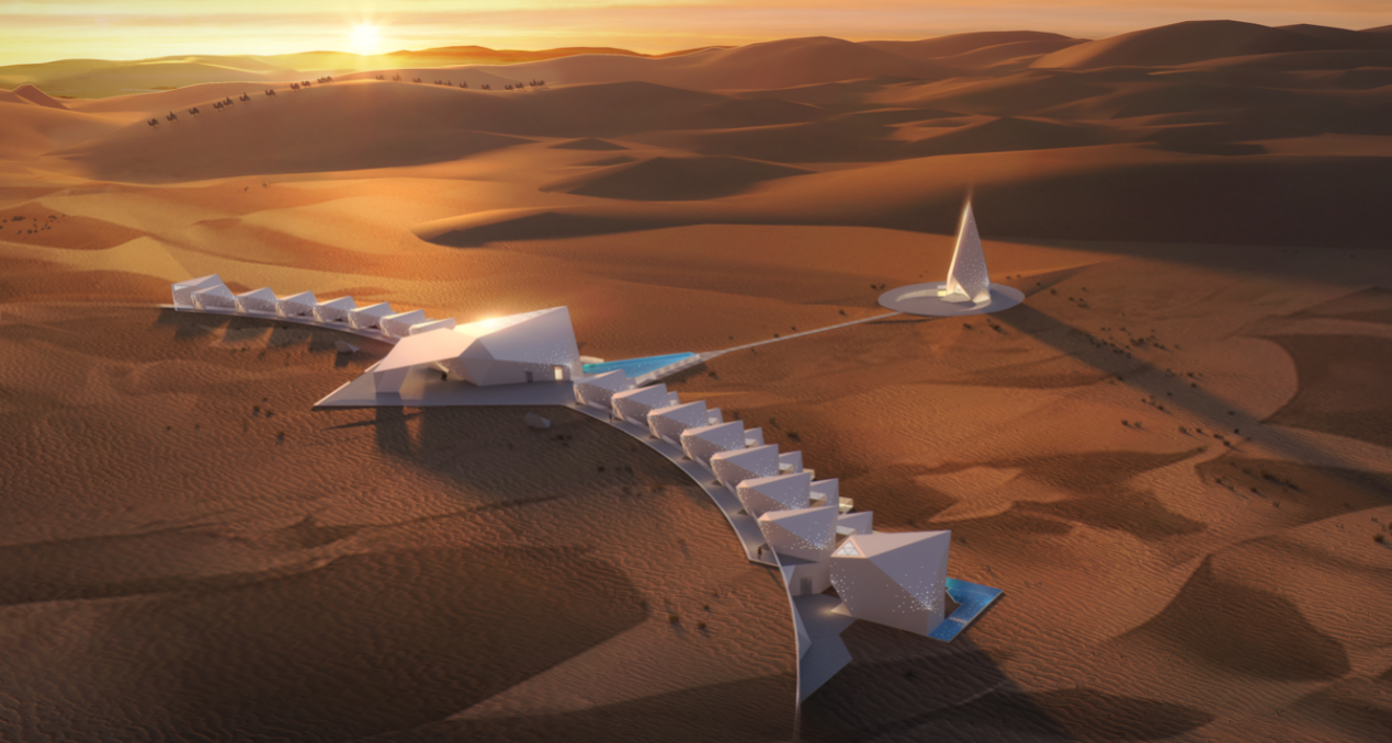 简单说,“中旅度假”将致力提供超乎想象、创新独特的度假体验,力争在一流的旅游目的地提供一流的服务,所以现阶段聚焦稀缺资源的顶尖酒店,主要面向的是来自一线城市和准一线城市高端客群。这类客源和中旅度假秉承着同样对度假和出游品质的极致追求。而沙漠钻石酒店的揭幕是“中旅度假”在高奢酒店领域战略布局的关键一步,也是“中旅度假”在极致度假目的地发展的新里程碑,更将进一步提高沙漠旅游度假目的地知名度。酒店总投资超亿元,共有30间独享全景沙海的舒适客房。其中星钻客房16间,面积约79平方米;星钻套房12间,面积约105平方米;蓝钻套房2间,面积约283平方米。酒店客房以项链形态分布,而此项链上的吊坠,则是酒店的婚礼堂。