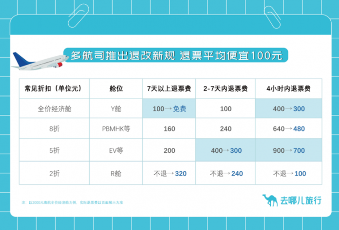 焦点新闻 多航司推出退改新规 退票平均节省100元 By TTG China / Posted on 10 January, 2024 14:12 今日起,南航、东航新版客票退改规则生效。根据公告,南航、东航扩大了客票免费退改范围、放宽了因病退改规则,并新增了票价波动的退票规则等,新规实行后退票平均省钱100元左右。 去哪儿平台反馈,目前已接到具体政策。据航司新规内容显示,此次客票退改规则调整,调低了机票退改签手续费的比例,并扩大了客票免费退改范围和适用场景。对于经济舱旅客来说,无需搞清不同舱位的差别,实际退票价格以订票页面展示为准,新规实行后退票平均省钱100元左右。