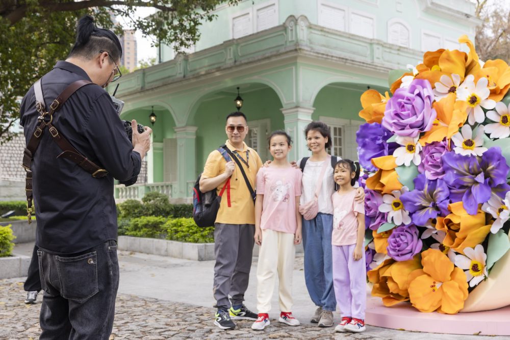 同时,龙环葡韵通过展出“情牵葡韵”浪漫且生机盎然的全新主题装置,将爱意延续,打造闲适惬意的休闲胜地,让旅客在这个初夏感受到历史城区的另一重风貌。当中包括以“遇见爱情”为题设计的打卡座椅,向不朽的爱情致敬,以及利用数十朵初夏限定仿真花材制作成的巨型花束装置。节假日期间,现场更安排了驻场摄影师免费提供“立拍立得”服务,为访客留下美好回忆。