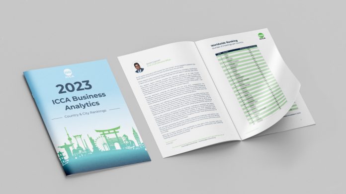 在ICCA排名报告当中,2023年实体会议次数排名全球前20的国家或地区依序为:美国(690场)、意大利、西班牙、法国、德国、英国、日本、荷兰、葡萄牙、加拿大、韩国、瑞典、澳大利亚、奥地利、比利时、希腊、波兰、中国(170场,排名第18)、捷克、巴西。香港以51场排名第46,澳门以23场排名第67。