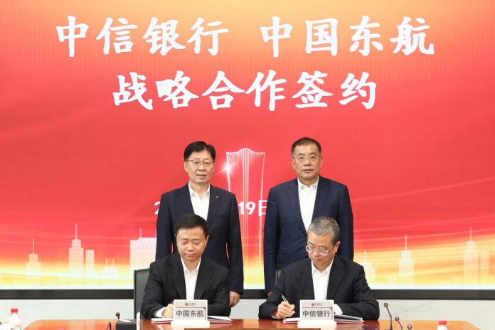 9月19日,中国东航与中信银行在北京签署战略合作协议,双方将进一步提升在各自领域的核心竞争力,建立长期、良好的战略性银企合作关系,携手共促双方高质量发展。