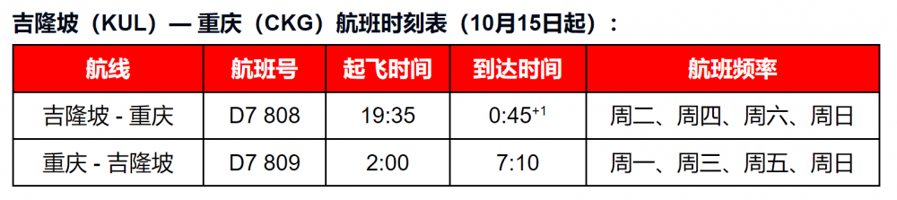 亚洲航空16日迎来了重庆-吉隆坡航线的成功首航。该航线由亚洲航空长途公司(AAX)运营。此航线开通后,将保持每周四班的频次,分别在周一、周三、周五和周日,为重庆与吉隆坡之间的旅客提供便捷的直航服务。新航线将会利用两国间的免签政策,促进中国与马来西亚之间的旅游和商务交流。