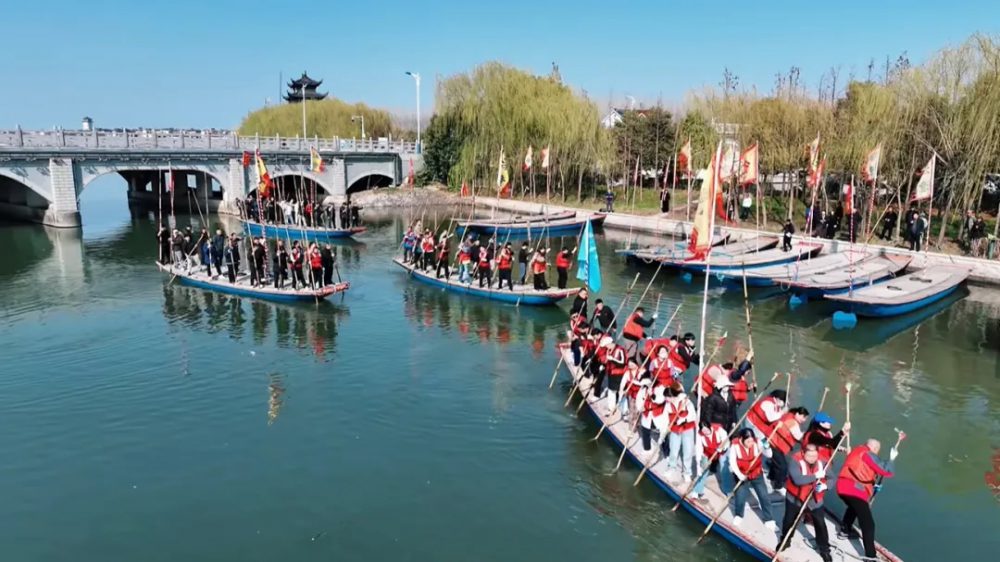 据介绍,溱潼会船是国家级非物质文化遗产,相传南宋时期,岳飞率领的岳家军与金兵激战溱湖后,当地百姓每到清明时节撑船祭奠阵亡将士,久而久之,便演绎成现今的水乡民俗。每逢清明时节,姜堰区的溱湖国家湿地公园都会举行盛大的民俗表演—国家级非遗溱潼会船。数百船只、上万船民齐聚十里溱湖,场面十分壮观,被誉为“世界最大水上庙会”。其他重要文旅活动还包括:端午龙舟汇、2025泰州铁人三项亚洲杯赛、溱湖八鲜美食推广、“黄龙士杯”青少年围棋赛、溱湖湾“氧生跑”等。