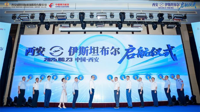 6月24日,东航MU5025航班满载旅客在西安咸阳国际机场腾空而起,从古丝绸之路起点飞往古丝路重要驿站——博斯普鲁斯海峡之畔的伊斯坦布尔,标志着东航西安—伊斯坦布尔直飞航线正式启航。