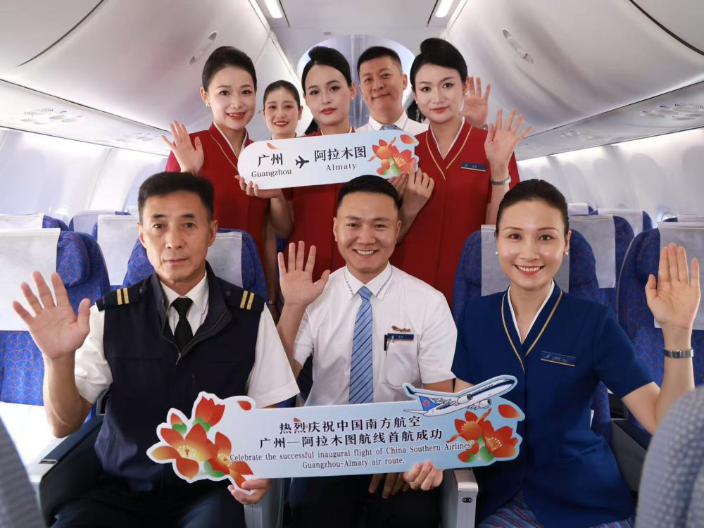 6月25日,载有145名旅客的中国南方航空CZ3083航班从广州白云国际机场顺利起飞,标志着南航广州-阿拉木图直飞航线正式开通。