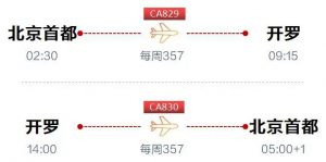 焦点新闻 国航北京首都-开罗航线正式开航 By TTG China / Posted on 10 July, 2025 11:09 7月9日,CA829航班降落在开罗国际机场,标志着国航北京首都-开罗航线正式开航。 这条航线使用空客A330机型执飞,全程约12小时。该航线每周执行3班,每周三、五、日执行。在时差方面,开罗为世界时区东二区,目前正实行夏时制,比北京时间晚5小时。