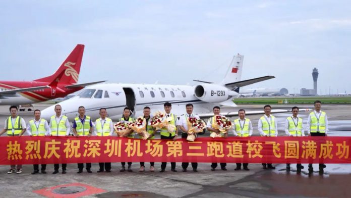 8月3日清晨,随着校验飞机平稳降落,深圳机场三跑道为期20天的飞行校验工作圆满结束。这标志着该项目建设取得关键进展,为后续竣工验收、试飞及年内投用奠定了重要基础。