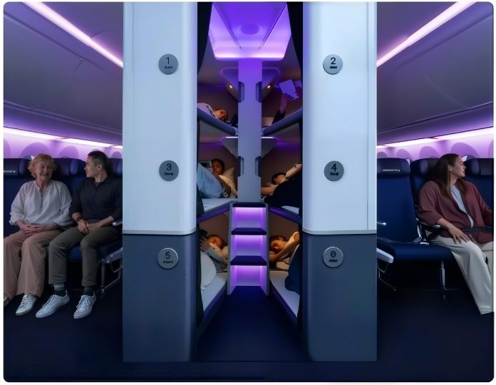 据披露,Skynest采用“上下铺”式布局,共设六个独立卧铺空间,每个铺位均配备床垫、寝具、隐私帘、安全带、阅读灯及充电接口。每轮使用后由乘务人员更换枕头、床单及毛毯。乘客可按4小时时段预订,收费标准为每时段495美元。