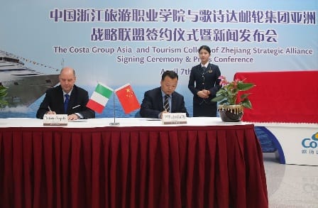 歌诗达邮轮集团亚洲与浙江旅游职业学院今天共同举办战略联盟签约仪式,此举将深化歌诗达邮轮集团与浙江旅游职业学院自2009年以来建立的良好合作关系,并进一步巩固歌诗达邮轮集团亚洲长期以来在中国市场的领导地位。