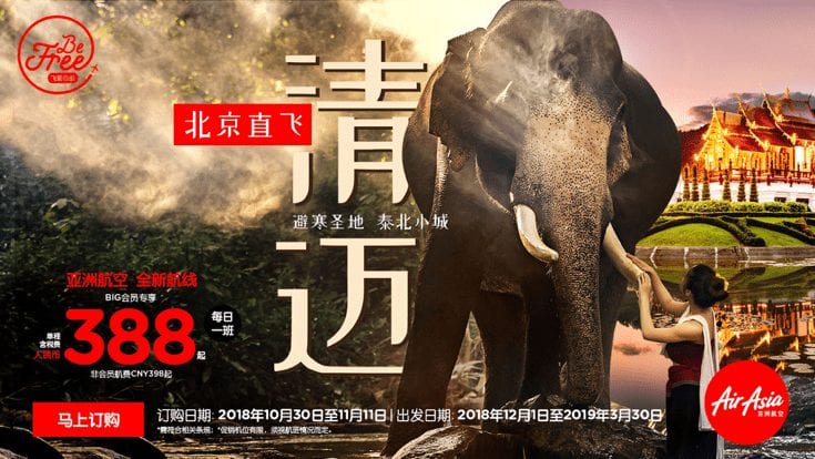 亚洲航空于昨日日正式宣布开售中国北京至清迈直飞航线,继续拓展中国北部市场。该航线2018年12月1日首航,通航后每天1班。